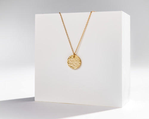 KARA (II) - Vintage style boho gold coin necklace with abstract hammered disk pendant w/ 925 gold plated sterling silver dainty chain