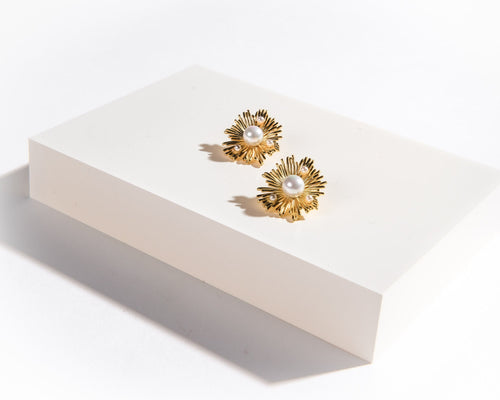 REEREE - Blooming sunflower pearl gold flower pearl earring abstract starry sunburst vintage statement pearl earring wedding bridal gift