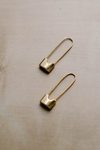 Gold paperclip earring, lock earring, statement hoops, vintage style, large padlock hoop, bold minimalist, safety pin earring, 925 silver