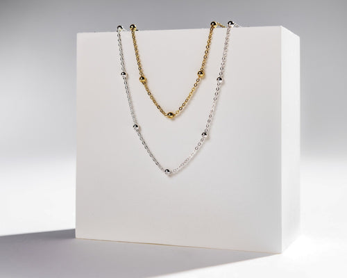 BELLE - Dainty bead satellite chain choker necklace 925 sterling silver boho style gold plated silver bead orb chain stacking necklace